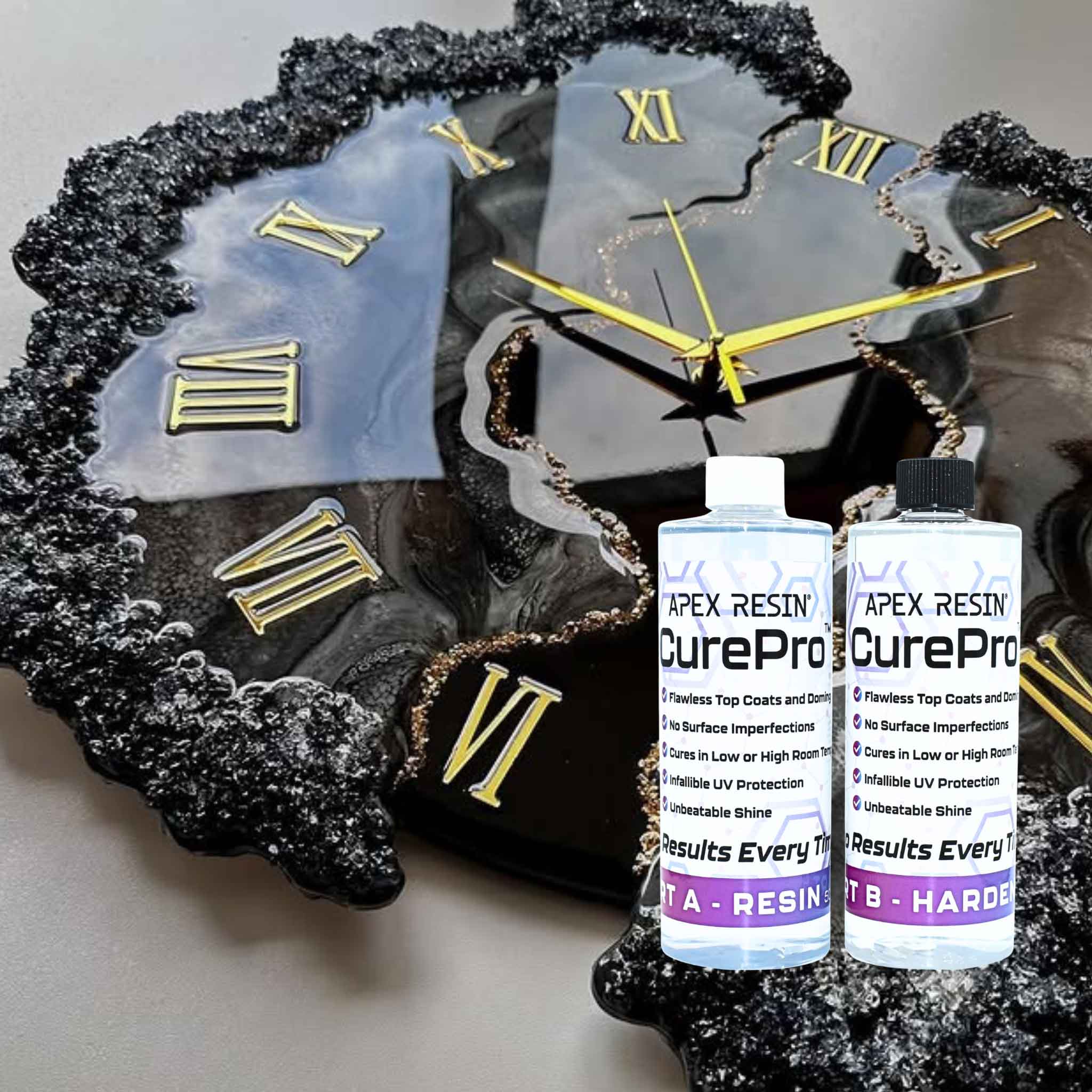 Apex Resin® CurePro is incredibly durable and resists cracking, even when subjected to multiple pours (2-4 layers). It is Ideal for both novice and experienced users and provides a dependable, safe and versatile resin for all your crafting needs.